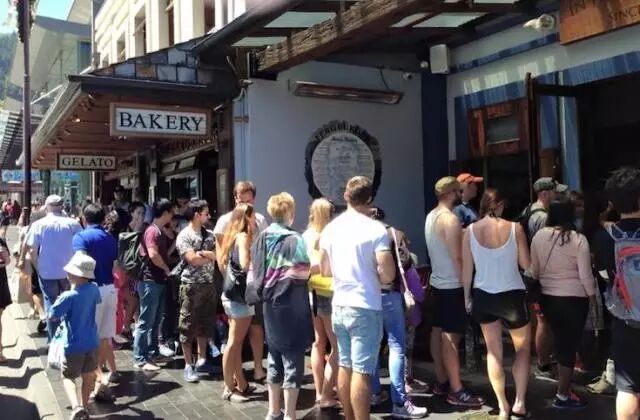 而Shotover Street和Stanley Street沿湖包圍的一塊區域,則布滿各類沿湖餐廳,和Shotover Street周圍小巷的餐廳不同,沿湖的餐廳基本以西餐和酒吧為主,規格和層次要更高一些。下午人們沿湖散步后,坐進餐廳悠閑的午餐或者下午茶,到了夜里,這塊區域是整個小鎮最熱鬧的地方,白天的餐廳都變身為酒吧夜店,白天癡迷于刺激的極限運動的年輕時尚的人們,夜里圍聚在這里進行又一場狂歡。